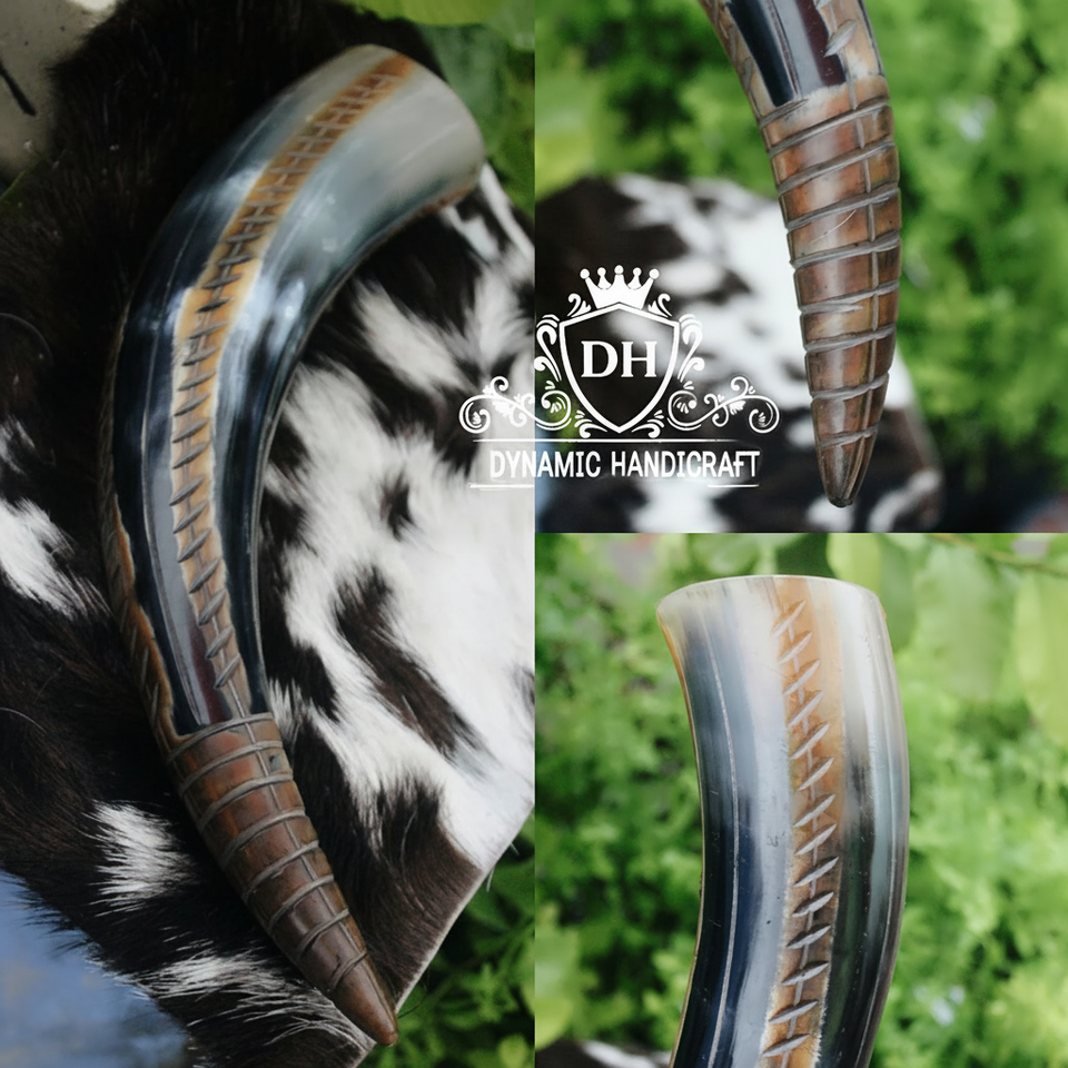 แก้ววิคกิ้งทำมือจากเขาควายแบบพรีเมียมสไตล์รัสติก ความจุ 300 มล.-700 มล. สลักลายได้ตามต้องการ สำหรับเบียร์ มี้ด และเอล เหมาะสำหรับเป็นของขวัญ