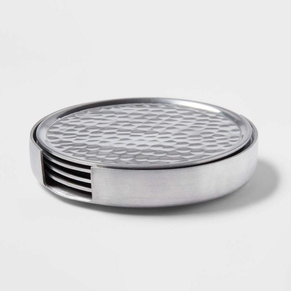 ชุดจานรองแก้วโลหะเหล็กกันสนิมระดับพรีเมียม ออกแบบมาเพื่อตกแต่งโต๊ะกาแฟในห้องนั่งเล่นสุดหรู