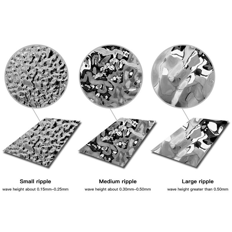 แผ่นสแตนเลสเกรดพรีเมียม SS 201 304 304L 316 430 สำหรับตกแต่งผนังและฝ้าเพดาน ลายคลื่นน้ำ สีต่างๆ