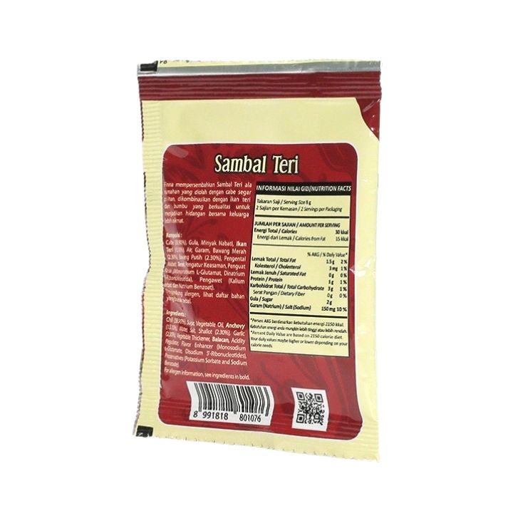 พรีเมี่ยมซัมบัล อูเลก เตอรี พริกกะทะขี้หนูเผ็ด บรรจุภัณฑ์แบบแพ็ค อาหารปรุงรสแบบดั้งเดิมของอินโดนีเซีย เครื่องปรุงรสชาติอร่อย