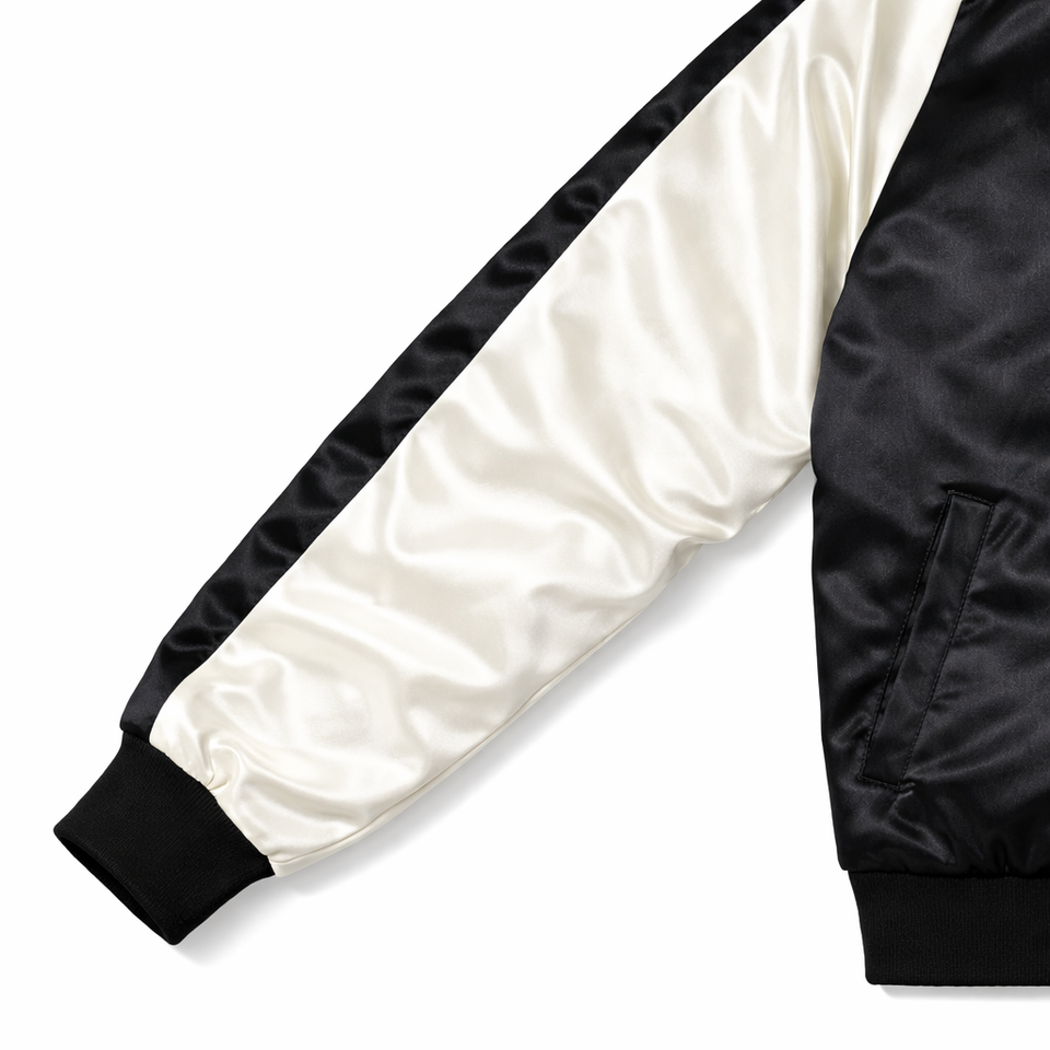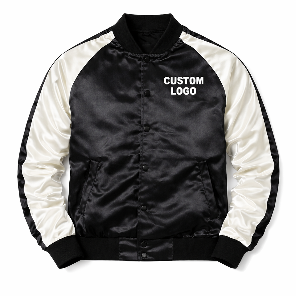 เสื้อแจ็คเก็ตผ้าซาตินพรีเมียม | เสื้อแจ็คเก็ตผ้าซาตินสไตล์วาร์ซิตี้ปักโลโก้ตามสั่งสำหรับทุกเพศ | ราคาโรงงานผู้ผลิตขายส่ง OEM