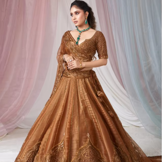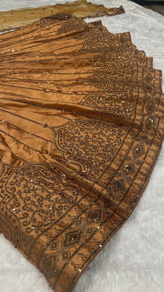 ชุดเลเฮนกาโชลีผ้าโพลีเอสเตอร์พรีเมียมยาวถึงพื้น ประดับเลื่อมและงานปักดิ้นอย่างประณีต แห้งเร็ว เหมาะสำหรับงานปาร์ตี้สไตล์บอลลีวูดที่สง่างาม