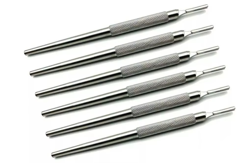 ด้ามมีดผ่าตัดแบบพรีเมียม ทรงกลม หมายเลข ที่ใส่ใบมีดผ่าตัดและมีดผ่าตัดขนาดเล็กแบบมืออาชีพ ทำจากสแตนเลส 3 ชิ้น รุ่นกลม หมายเลข 3