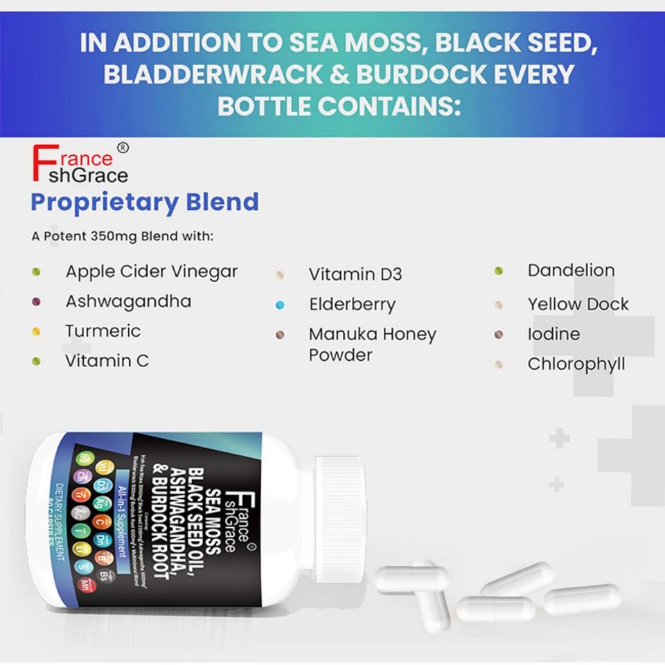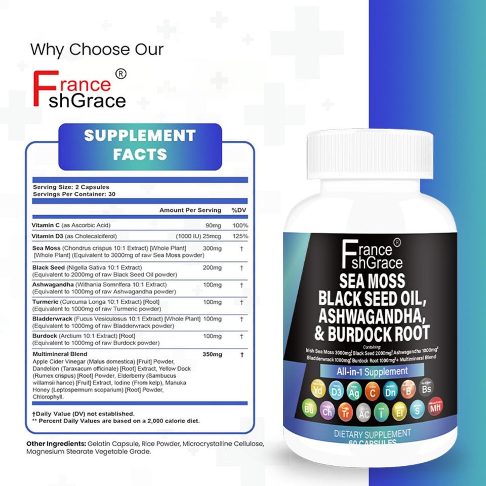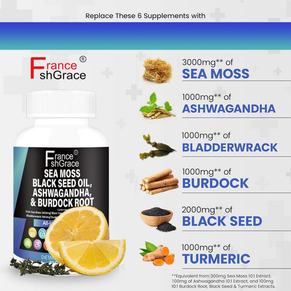 แคปซูลสารสกัดสาหร่ายทะเลพรีเมียม น้ำมันเมล็ดดำ อะชวาคานธา เสริมสร้างระบบภูมิคุ้มกัน 60 แคปซูล แคปซูลสาหร่ายทะเล