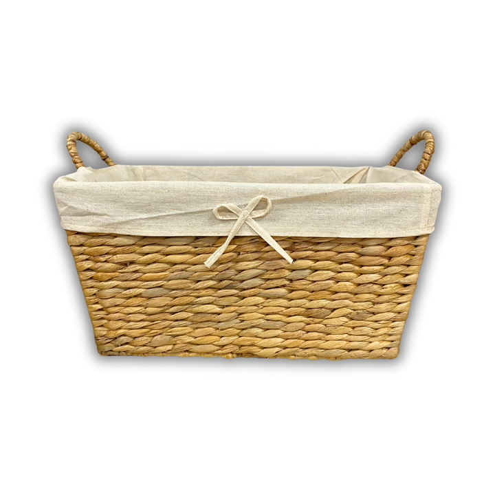 ตะกร้าหวายจากหญ้าทะเลไม้ไผ่ใส่ของผักตบชวาแบบพรีเมี่ยมพร้อมผ้าซับในสำหรับจัดเก็บและตกแต่งทุกห้อง