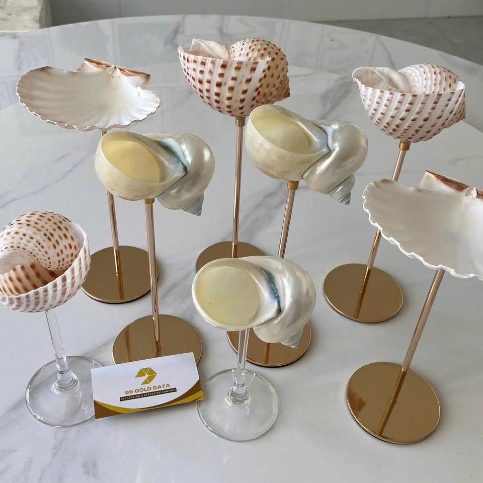 แก้วไวน์เปลือกหอยพรีเมียม ผลิตจากวัสดุเปลือกหอยและแก้ว สำหรับเสิร์ฟค็อกเทลและตกแต่งโต๊ะสไตล์ชายฝั่ง เวียดนาม