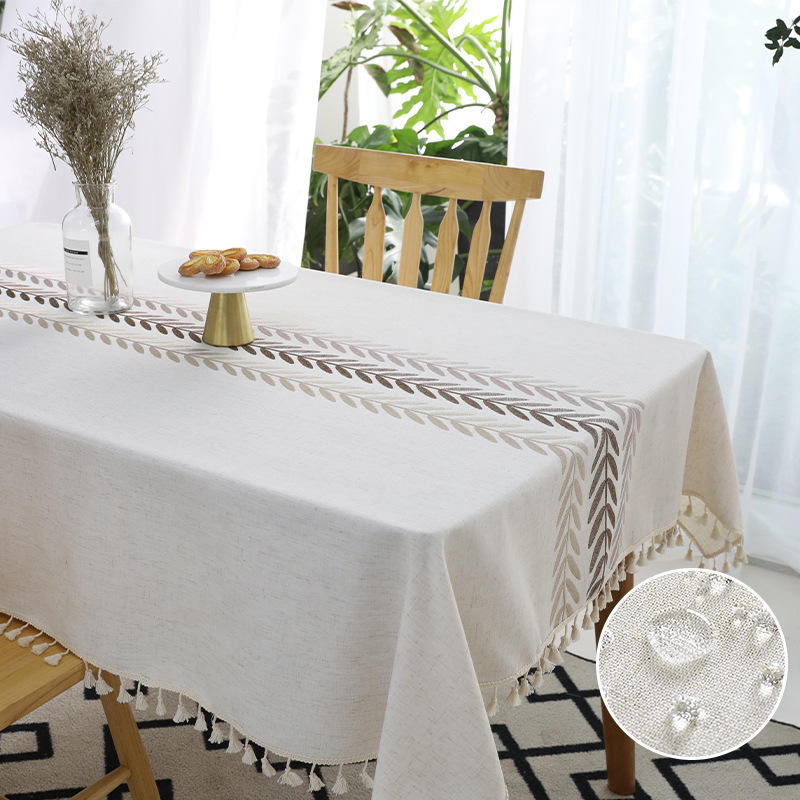 ผ้าปูโต๊ะผ้าฝ้ายลินินปักลายพรีเมียม รูปทรงสี่เหลี่ยมผืนผ้า พร้อมพู่ห้อย สำหรับใช้ในบ้าน กันน้ำ
