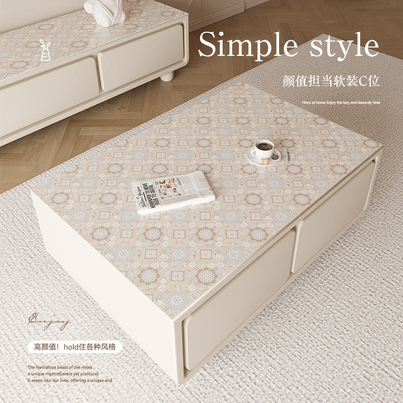 แผ่นรองโต๊ะกาแฟพิมพ์ลายคุณภาพพรีเมียม รูปทรงสี่เหลี่ยมผืนผ้า ผลิตจาก PVC กันน้ำมัน ดีไซน์ทันสมัย ลายดอกไม้สวยงาม สำหรับป้องกันโต๊ะในห้องนั่งเล่น