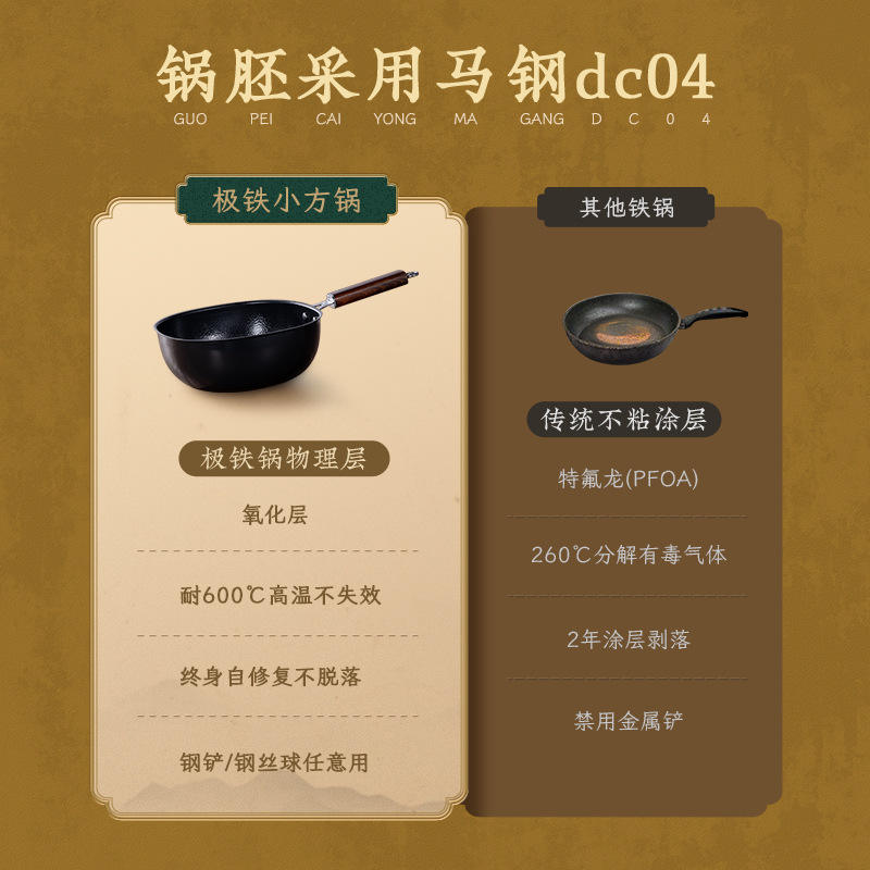 กระทะเหล็กทรงสี่เหลี่ยมพรีเมี่ยม รุ่น 151 เคลือบสารกันติด ทนทาน สำหรับทอดอาหารหนึ่งจาน ล้างด้วยมือเท่านั้น