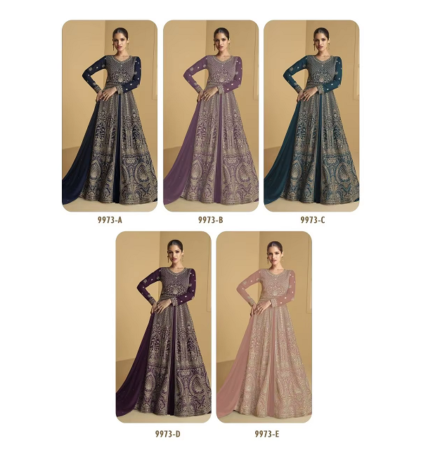 ชุดอานาร์กาลีแบบกึ่งเย็บสำเร็จ ผ้าฟ็อกซ์จอร์เจตต์ พร้อมงานปักด้านหน้าและด้านหลัง สำหรับงานปาร์ตี้ พร้อมผ้าคลุมไหล่
