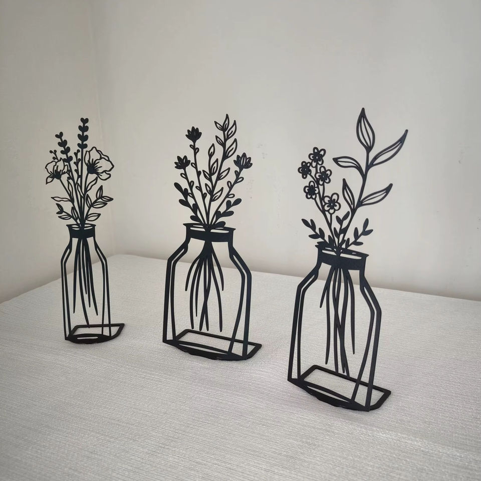 ชุดแจกันดอกไม้โลหะพรีเมียม 3 ชิ้น เหมาะสำหรับตกแต่งภายในห้องและจัดสวนภายนอก จากอินเดีย