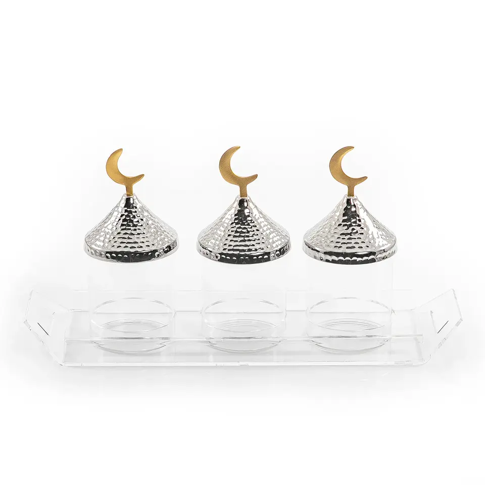 ชุดกล่องหวานสามกล่องพรีเมี่ยมพร้อมฝาปิดเน้นรูปพระจันทร์สีทองเหมาะสำหรับช็อคโกแลตขนมวันเกิดและงานแต่งงาน