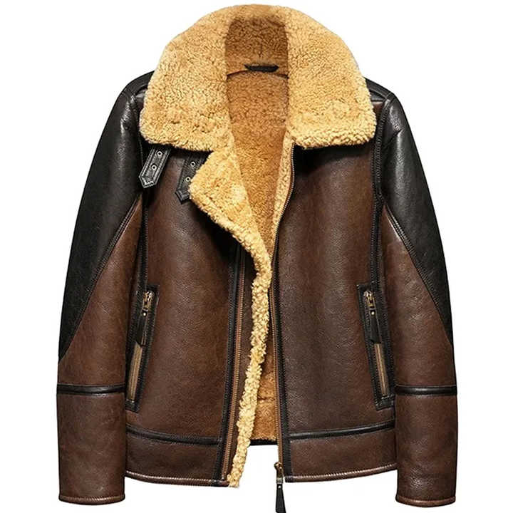 เสื้อแจ็คเก็ตบอมเบอร์หนังแกะพรีเมียมปักโลโก้ตามสั่ง คอตั้งแบบกลับด้านได้ สำหรับผู้ชาย อุ่นสบายในฤดูหนาว สไตล์นักบิน