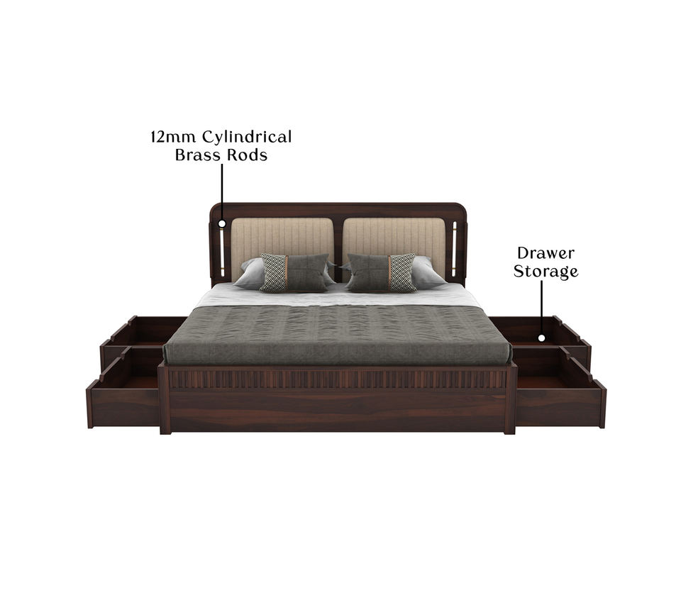 เตียงไม้ชีแชมพรีเมียมพร้อมลิ้นชักเก็บของ ขนาดคิงไซส์ สีวอลนัท เตียงไม้จริงพร้อมลิ้นชักเก็บของอเนกประสงค์ เตียงแบบมีล้อเลื่อน