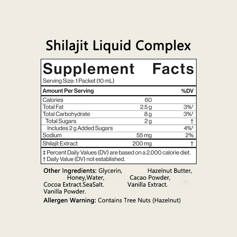 ของเหลวจาก Shilajit แบบพรีเมี่ยมพร้อมโกโก้เฮเซลนัทและน้ำผึ้งบราซิลช่วยบำรุงสมองให้มีสุขภาพดี