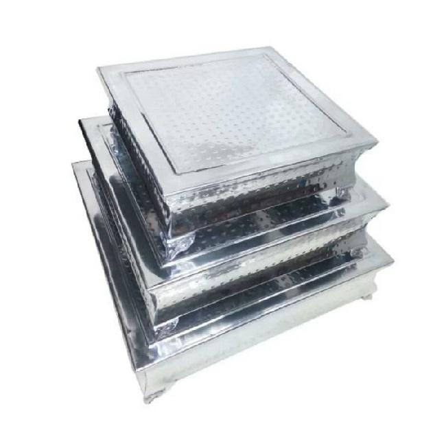 Premium Shinny Three-Tier Silver Metal Cake Stand Square Shaped High Quality Cake Display for New Year Celebration Parties