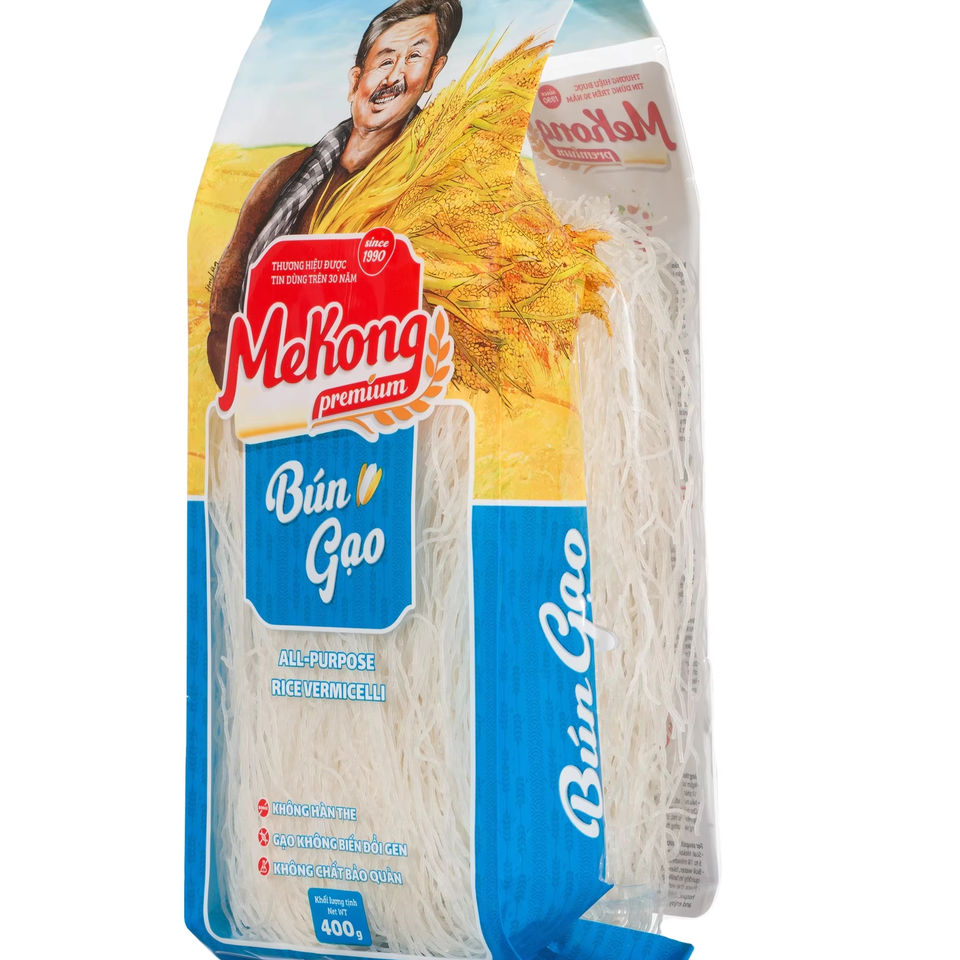 วุ้นเส้นข้าวพรีเมียมแบบสั้น 400 กรัม ไม่ใช่จีเอ็มโอ ไม่มีสารกันบูด ผลิตโดยผู้ผลิตในเวียดนาม รับผลิตแบบ OEM และฉลากสินค้าส่วนตัว