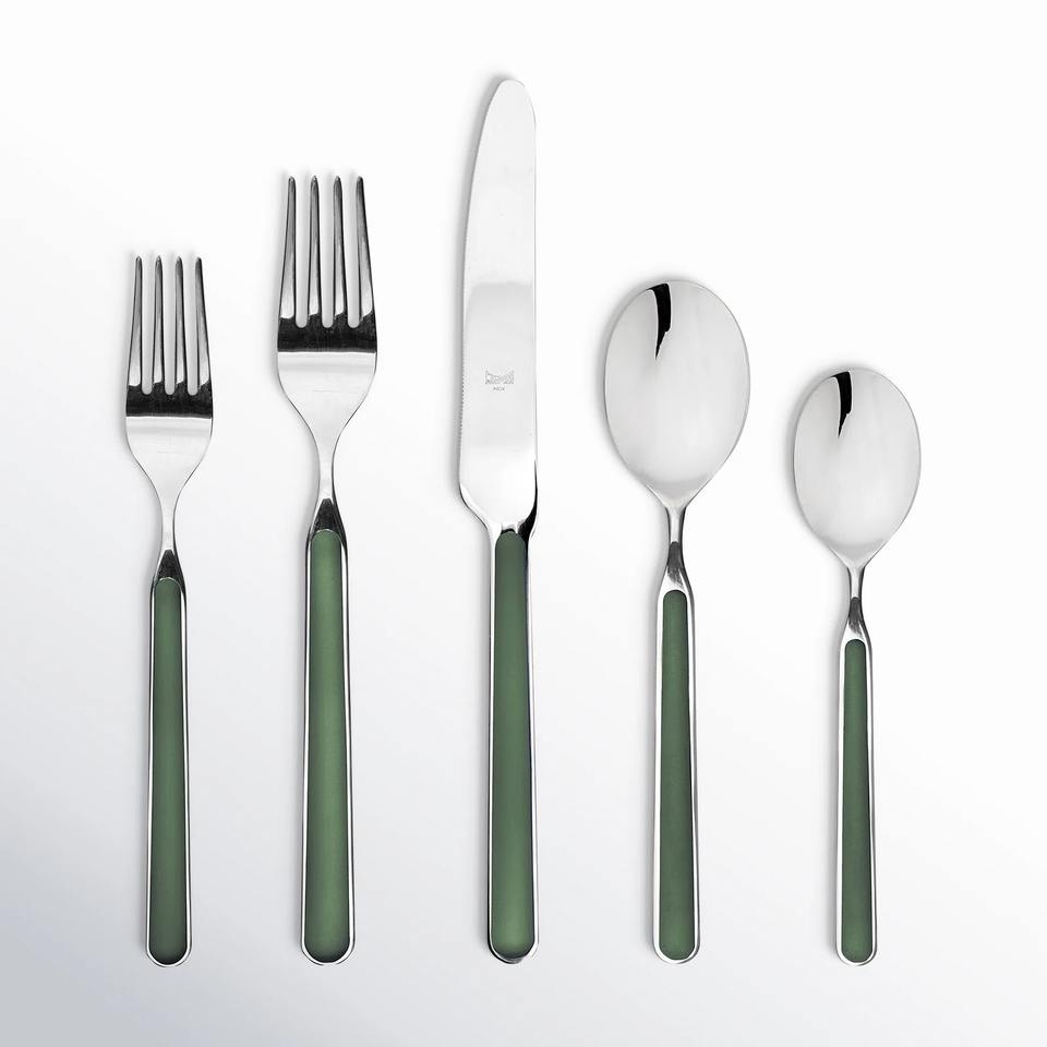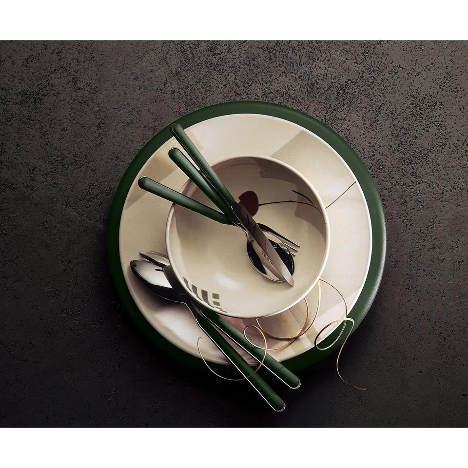 ชุดช้อนส้อมสีเงินพรีเมี่ยมพร้อมที่จับสีเขียวสำหรับรับประทานอาหารห้องครัวงานแต่งงานเครื่องใช้บนโต๊ะอาหารเครื่องใช้สำหรับพนักงานต้อนรับของขวัญจากอินเดีย