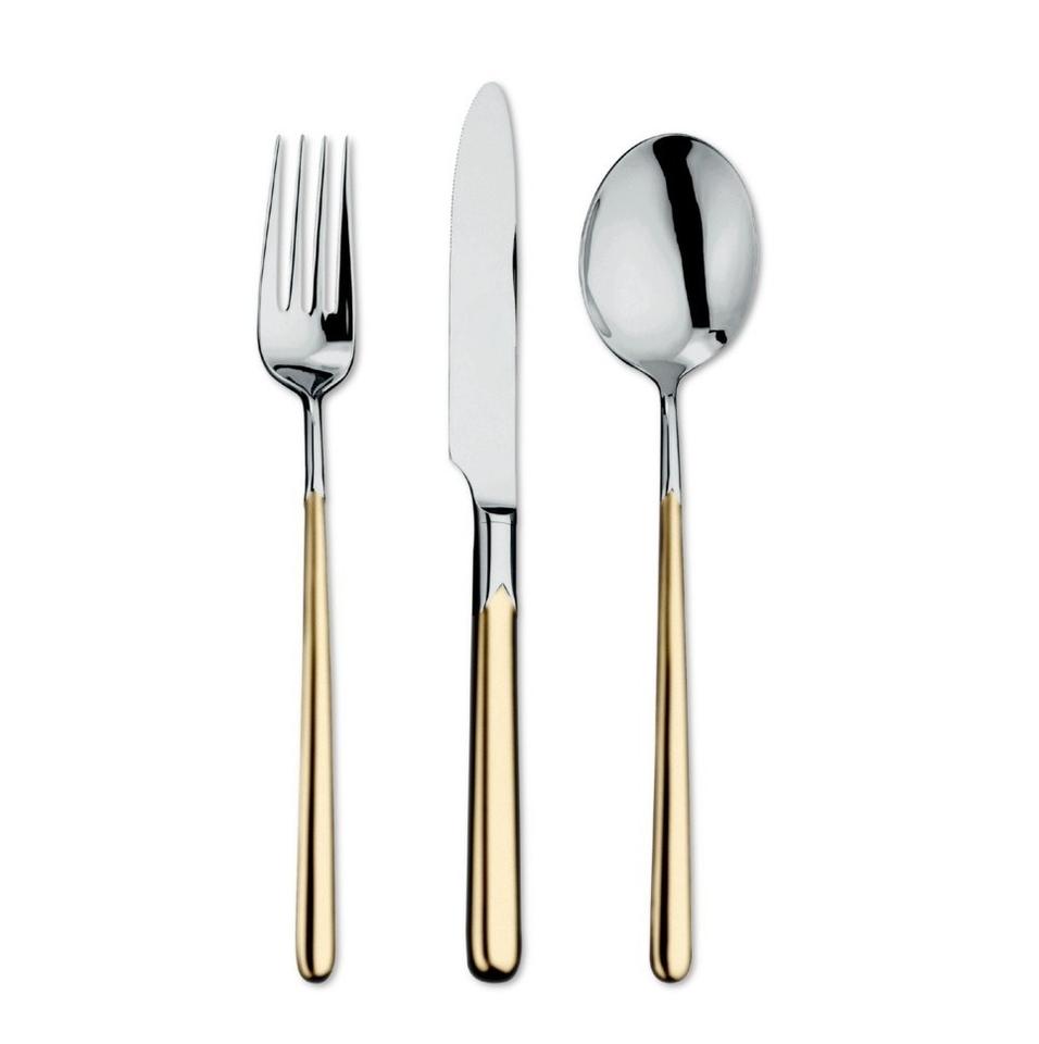 ชุดช้อนส้อมสแตนเลสสองโทนสีเงินและทองแบบพรีเมี่ยมมีดส้อมและช้อนช้อนส้อมพร้อมที่จับสีทอง