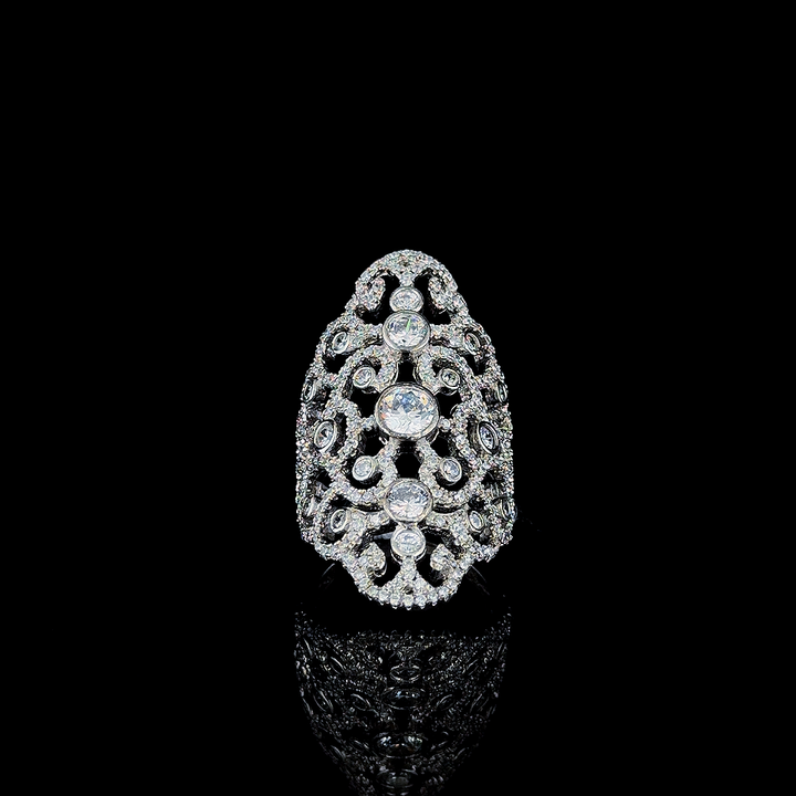 แหวนเงินแท้ทรงมาร์ควิสสำหรับผู้หญิง ขัดเงาอย่างดี ลายฉลุโปร่ง ดีไซน์ยาว โดดเด่น เหมาะสำหรับงานปาร์ตี้