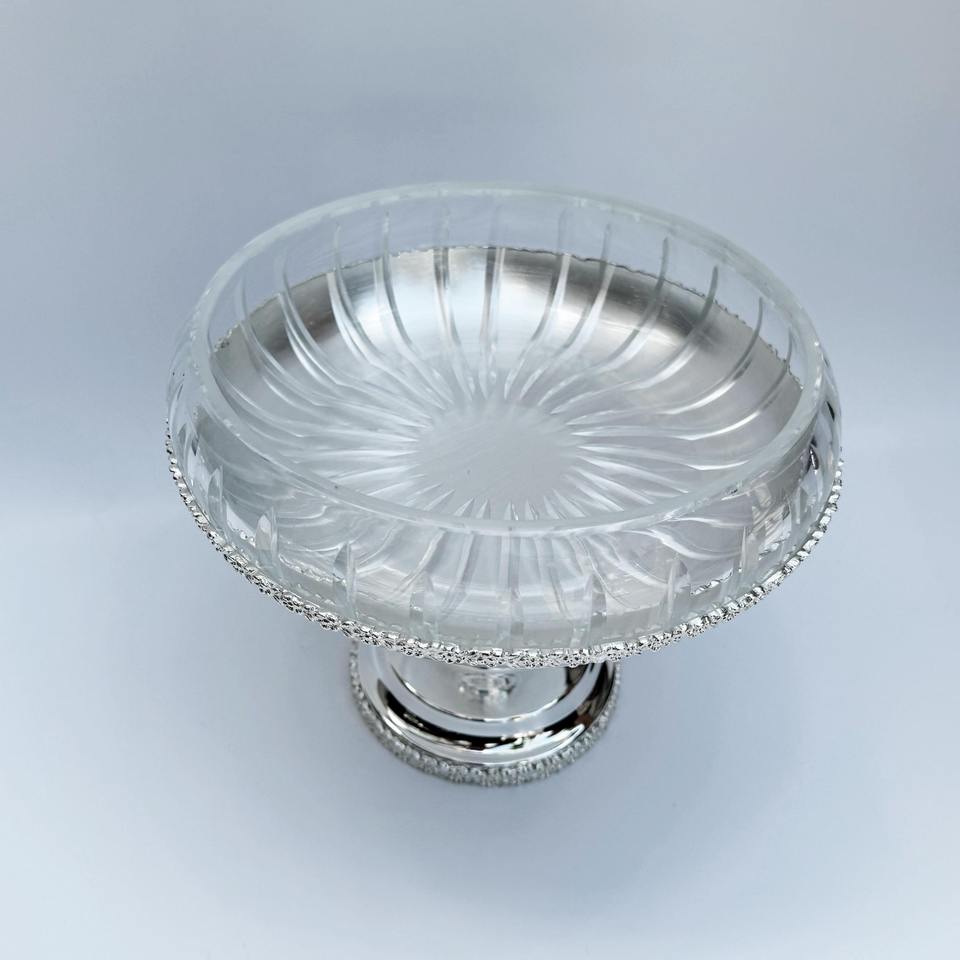 ชามแก้วฐานโลหะสีเงินพรีเมียม เหมาะสำหรับเสิร์ฟของหวาน ขนมขบเคี้ยว อาหารครอบครัว และงานเฉลิมฉลอง