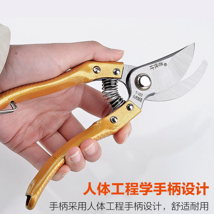 กรรไกรตัดแต่งกิ่งแบบบายพาส รุ่นพรีเมียม SK5 ผลิตจากเหล็กอัลลอยด์ ขนาด 20-30 มม. สีแดงจีน ทองพระจันทร์ เงิน ด้ามจับสีเงิน เครื่องมือทำสวน