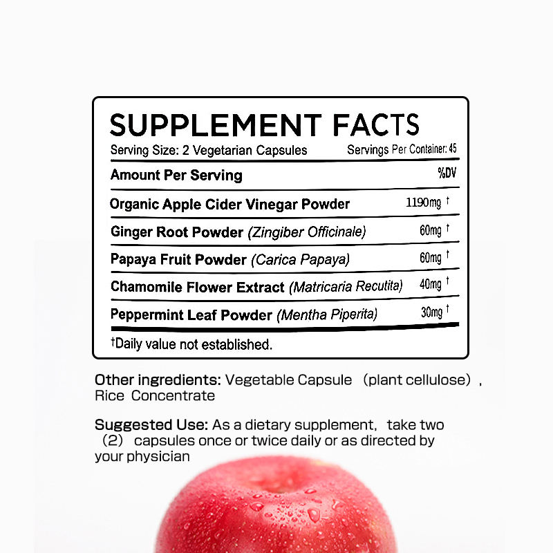 Ginger Root Powder, Papaya Fruit Powder, Chamomile Flower Extract, Peppermint Leaf PowderMain Ingredient