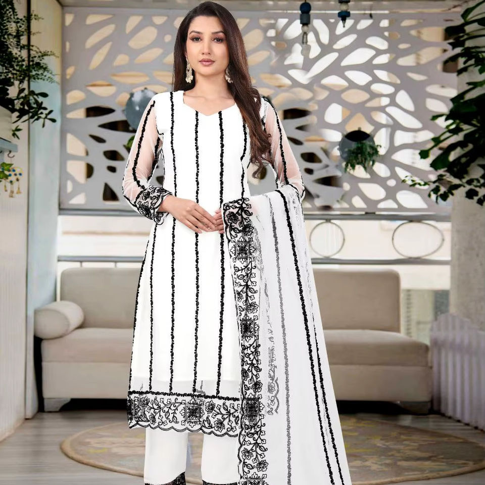 ชุดคุรตะผ้าเน็ตเนื้อนุ่มผสมผ้าไหมพรีเมียม | ชุดปักลายสำหรับสุภาพสตรี น้ำหนักเบา 350 กรัม