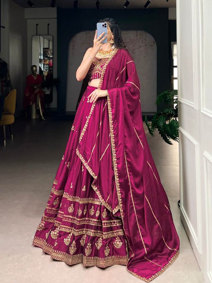 ชุดเลเฮนกาโชลีผ้าไหมรังโกลีเนื้อนุ่มพรีเมียม ปักด้วยด้ายเลื่อม เหมาะสำหรับงานแต่งงาน งานเลี้ยงฤดูร้อนและฤดูหนาว