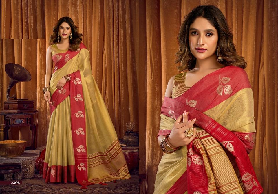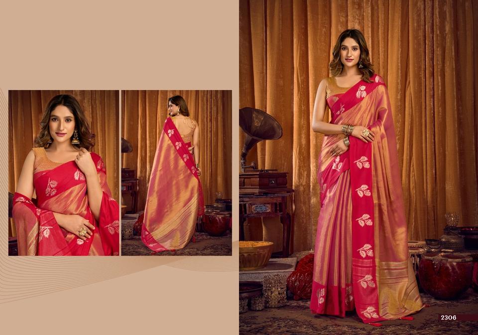 ผ้าส่าหรีงานทอเนื้อนุ่มพิเศษสีโรสโกลด์สำหรับงานเทศกาล