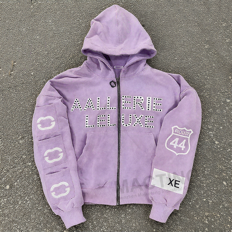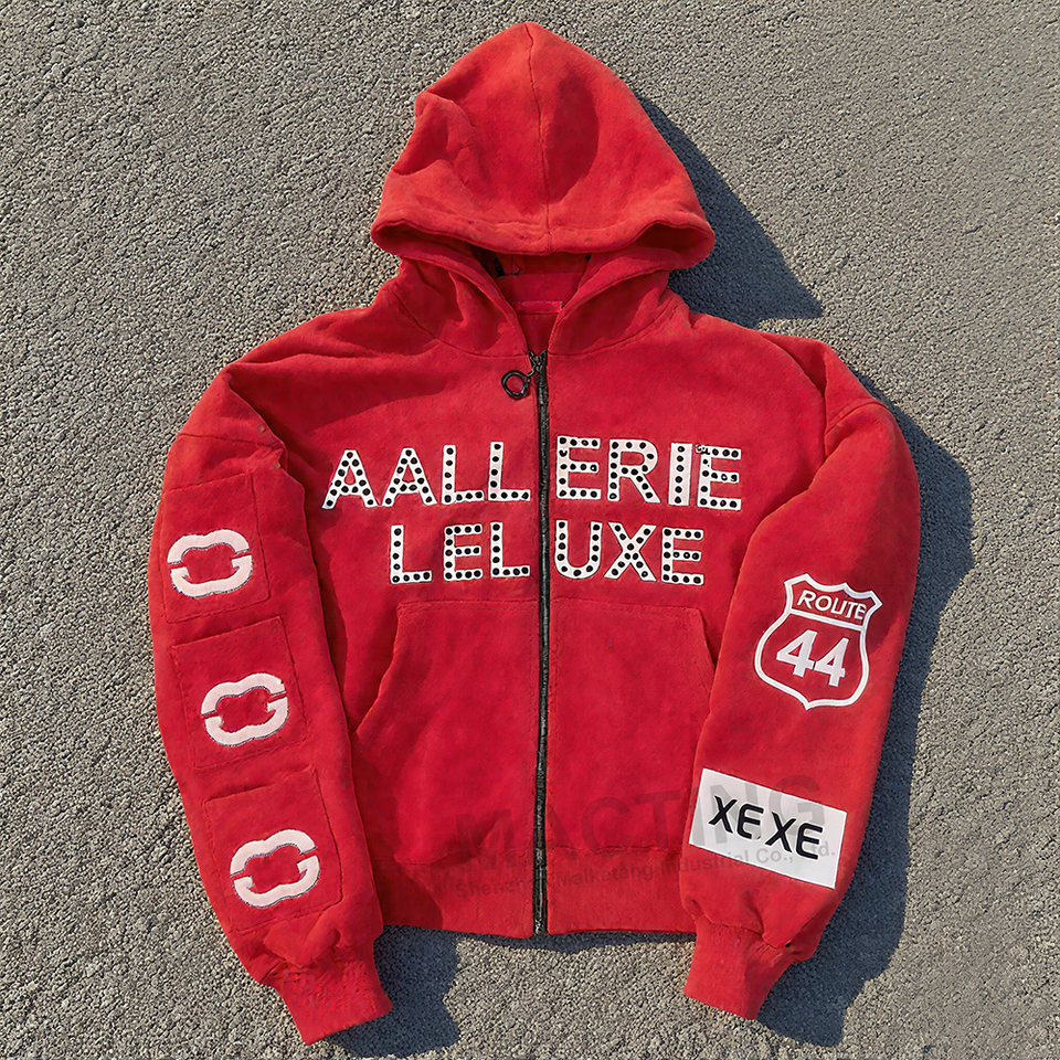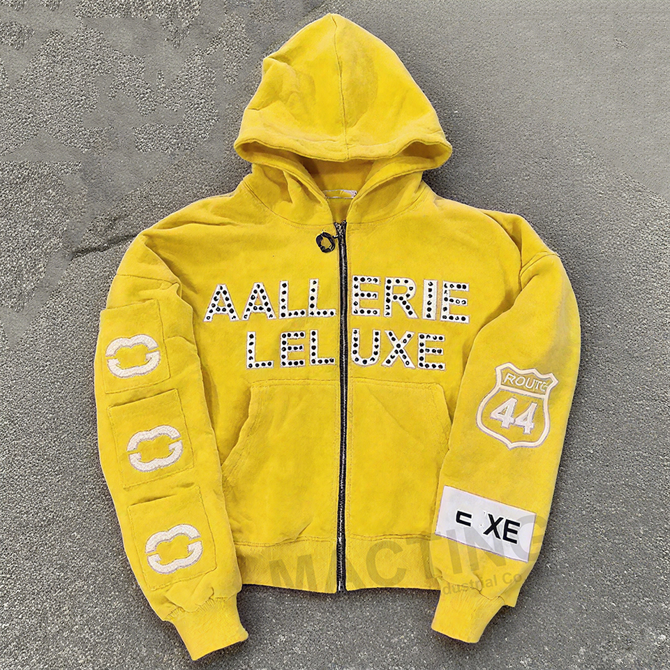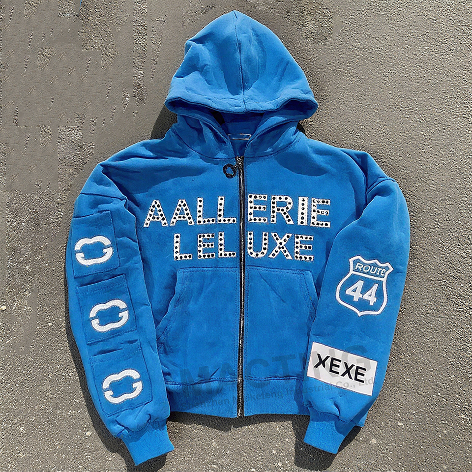 เสื้อฮู้ดผู้ชายแบบพรีเมียม ผ้าฝ้ายถัก ทรงโอเวอร์ไซส์ กันน้ำ สำหรับฤดูใบไม้ร่วง ตกแต่งด้วยคริสตัลและหิน