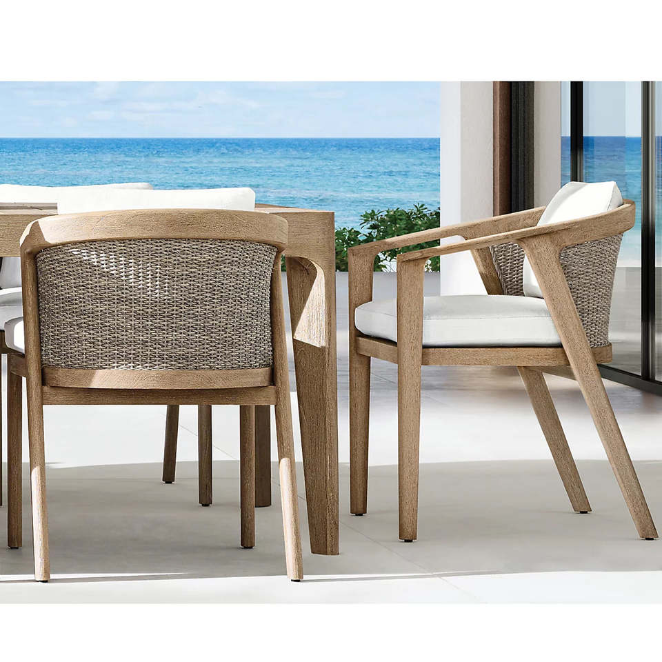 เก้าอี้ทานอาหารไม้สักแท้พรีเมียม พร้อมเก้าอี้หวายทนทุกสภาพอากาศ สีธรรมชาติ-มอลตา