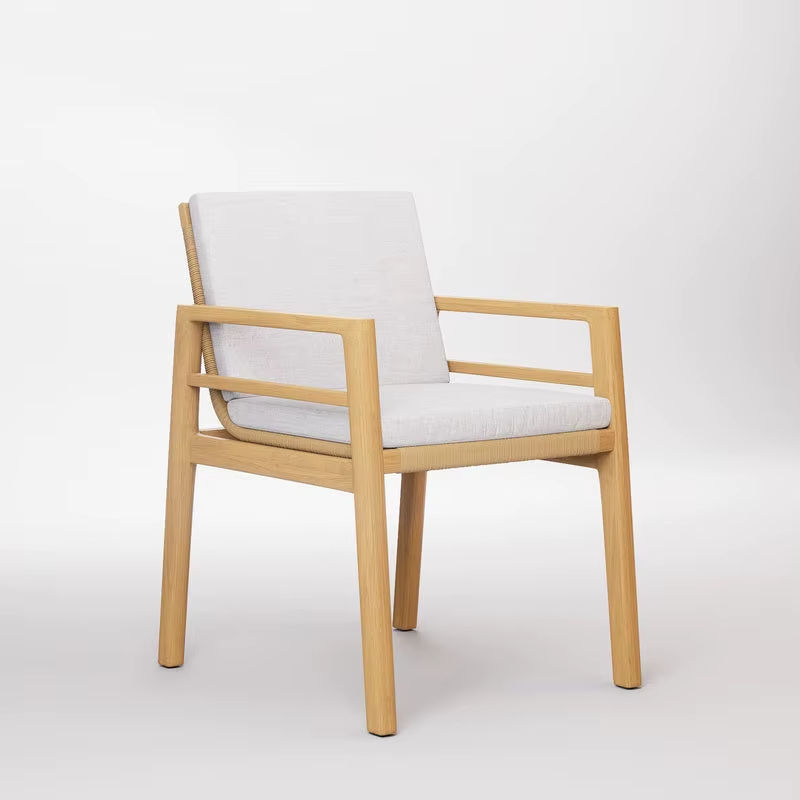 เก้าอี้รับประทานอาหารไม้สักแท้คุณภาพพรีเมียม หุ้มผ้าทนทาน เป็นมิตรกับสิ่งแวดล้อม เหมาะสำหรับเฟอร์นิเจอร์รับประทานอาหารทั้งในร่มและกลางแจ้ง