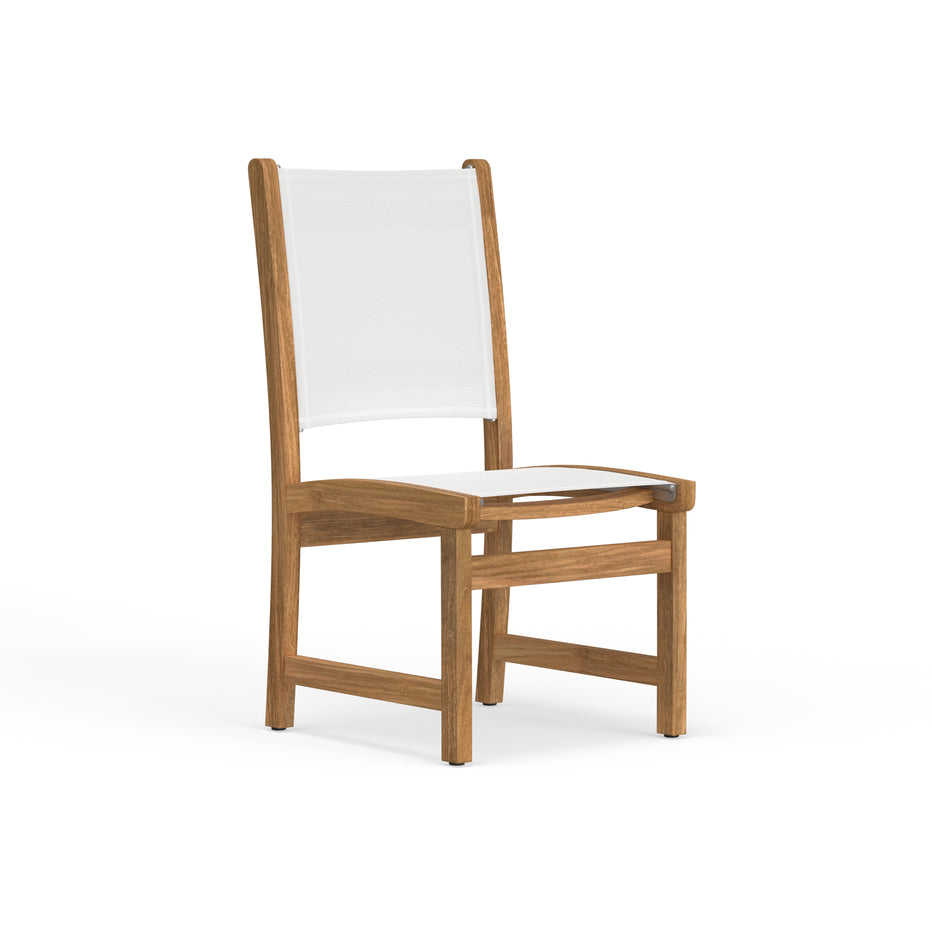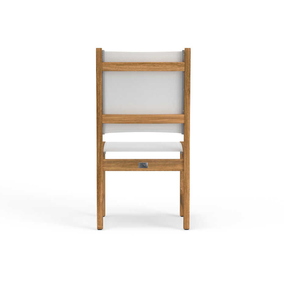 เก้าอี้รับประทานอาหารกลางแจ้งไม้สักแท้คุณภาพพรีเมียม เป็นมิตรกับสิ่งแวดล้อม พร้อมพนักพิงผ้าสลิงและเบาะนั่งผ้า ดีไซน์ทันสมัย เหมาะสำหรับโรงแรมและรีสอร์ท