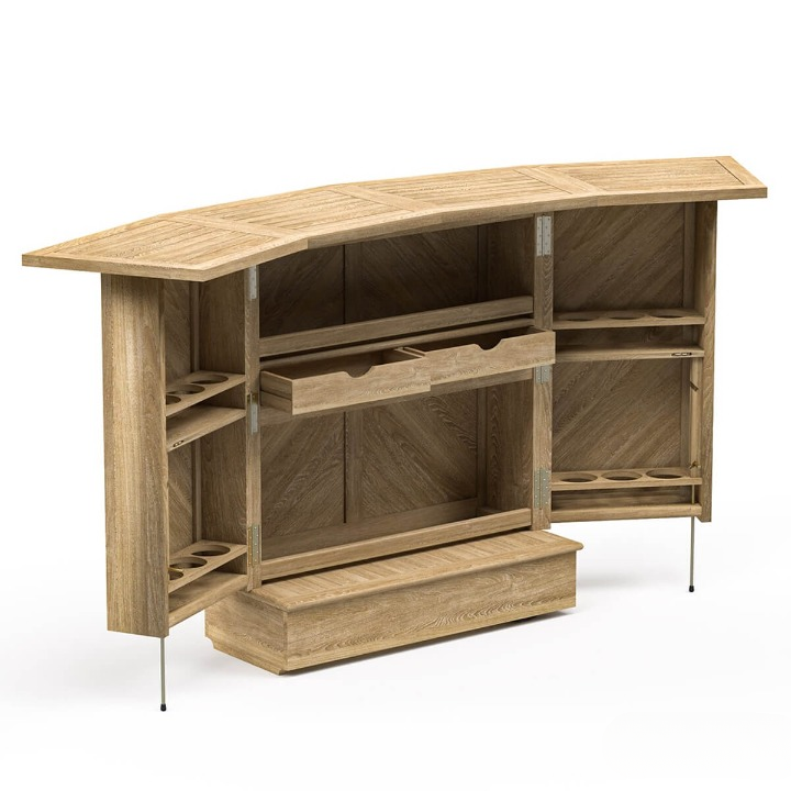 ชุดบาร์ไม้สักแท้คุณภาพพรีเมียม สำหรับใช้งานเชิงพาณิชย์กลางแจ้ง ขยายได้ พร้อมชั้นวางของ ชั้นวางไวน์ เก้าอี้บาร์ 3 ตัว เหมาะสำหรับโรงแรม ห้องครัว และร้านอาหาร