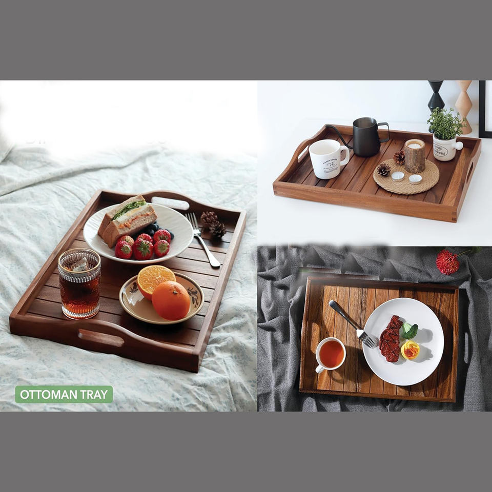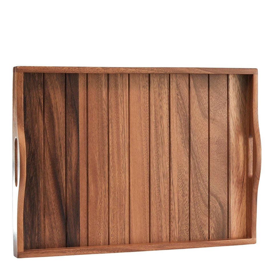 ถาดเสิร์ฟไม้เนื้อแข็งคุณภาพพรีเมียม รูปทรงสี่เหลี่ยมผืนผ้า ขัดเงาแบบธรรมชาติ สำหรับร้านอาหาร โรงแรม บ้าน ใช้เสิร์ฟขนม ชา จำนวนมาก