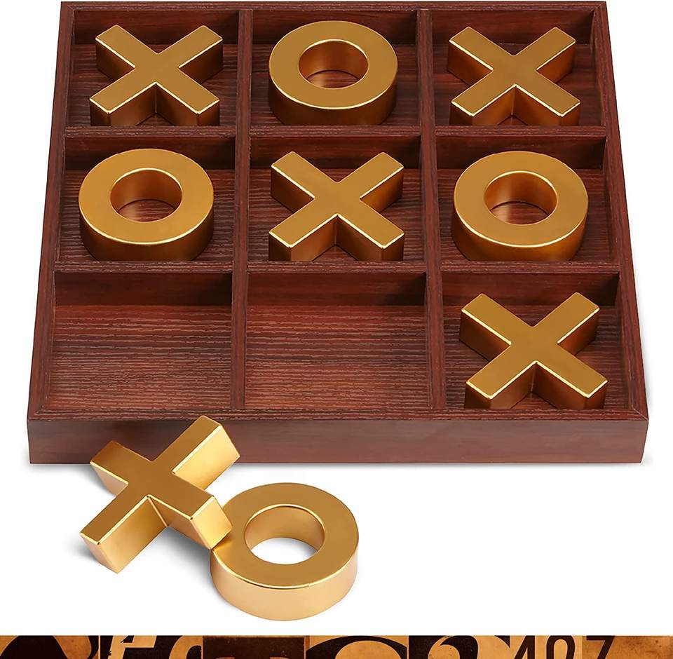 บอร์ดเกม Tic-Tac-Toe แบบไม้ล้วน,ชุดของเล่นสีทองยักษ์สำหรับกิจกรรมกลางแจ้ง/ในร่มสำหรับเด็กผู้ใหญ่