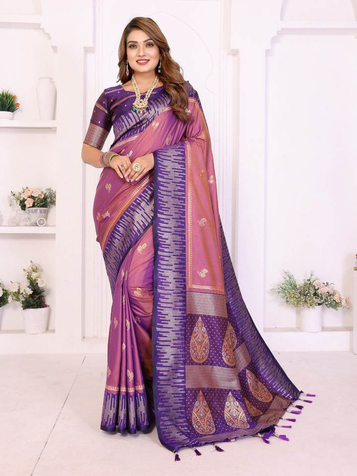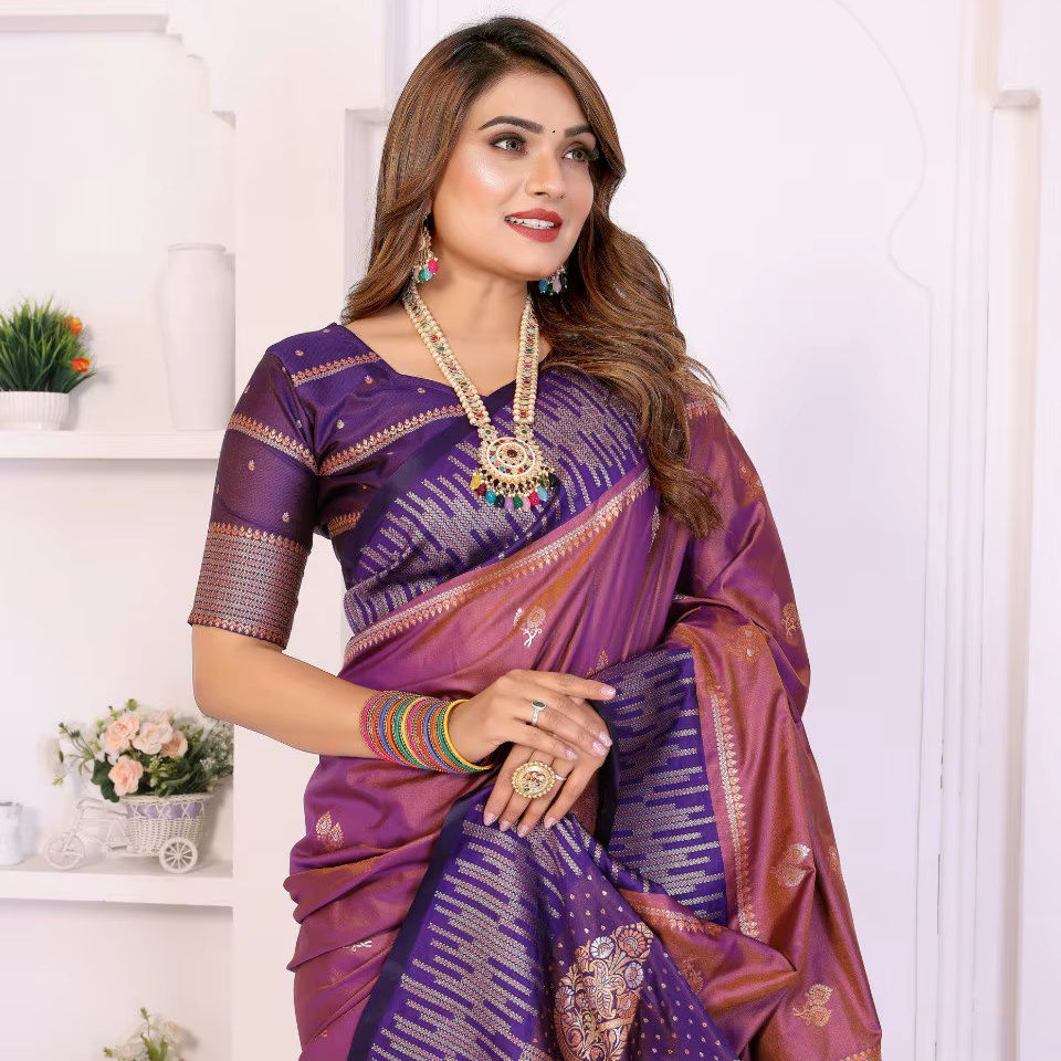 ส่าหรีผ้าไหมใต้แบบพรีเมี่ยมพร้อมด้วยผ้าทอ Zari ที่ดูมีสองโทน