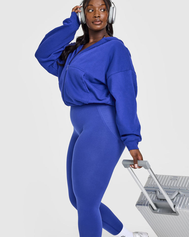 เสื้อฮู้ดซิปรูดซิปสำหรับผู้หญิง, เสื้อมีฮู้ดสีฟ้ามีซิปรูดกันรอยยับและระบายอากาศได้ดีสำหรับผู้หญิงยิมมีฮู้ด
