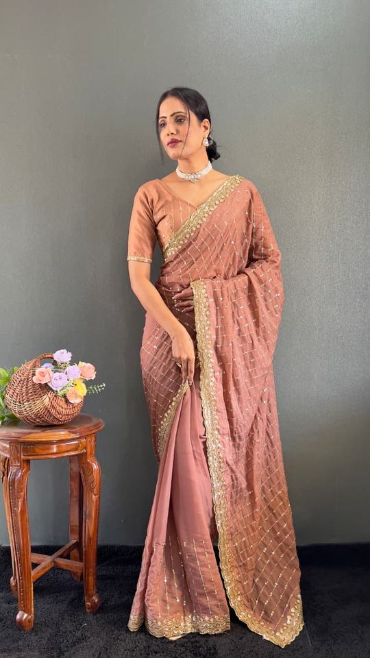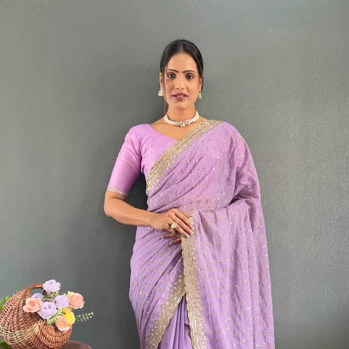 ชุดส่าหรีผ้าไหมพรีเมียม ประดับเลื่อม พร้อมสวมใส่ คอลเลคชั่นอินเดียสำหรับผู้หญิง มีสินค้าในสต็อก