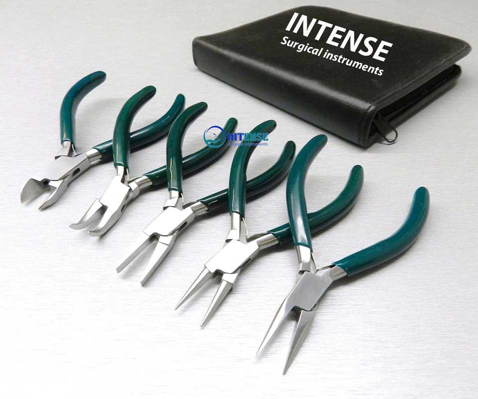 คีมหนีบมือจับสีฟ้าแหวนแยกระดับพรีเมียมทำสร้อยข้อมือ130มม. ทำจากสแตนเลสสตีลแบบมืออาชีพงานฝีมือประดับด้วยลูกปัด