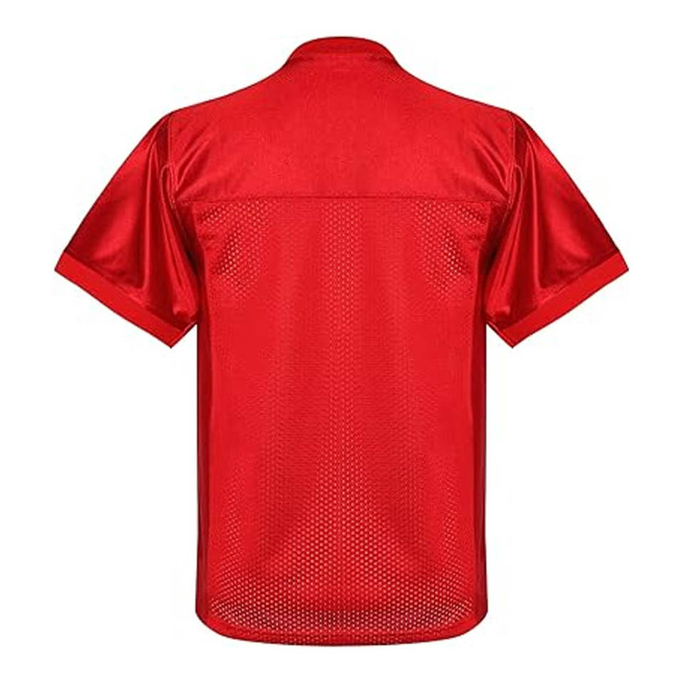 เสื้อฟุตบอลและฟุตบอลตาข่ายอเมริกันแบบพรีเมี่ยมสำหรับผู้ชายชื่อทีมและหมายเลขหน้าจอบ็อกซี่แขนสั้นสำหรับฝึกซ้อม