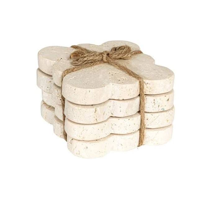 ชุดจานรองแก้วหินแท้ Travertine พรีเมียม พร้อมที่วาง ทนความร้อน ผิวธรรมชาติ ดีไซน์หรูหรา ปกป้องโต๊ะบาร์ในบ้าน