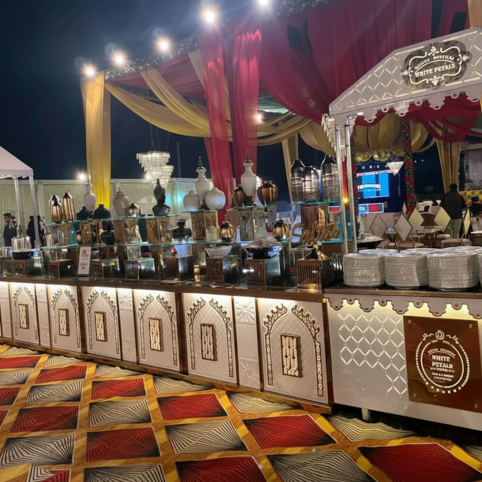 โต๊ะสแตนเลสสำหรับจัดเลี้ยงแบบบุฟเฟ่ต์และโต๊ะจัดแสดงอาหารแบบพรีเมียม