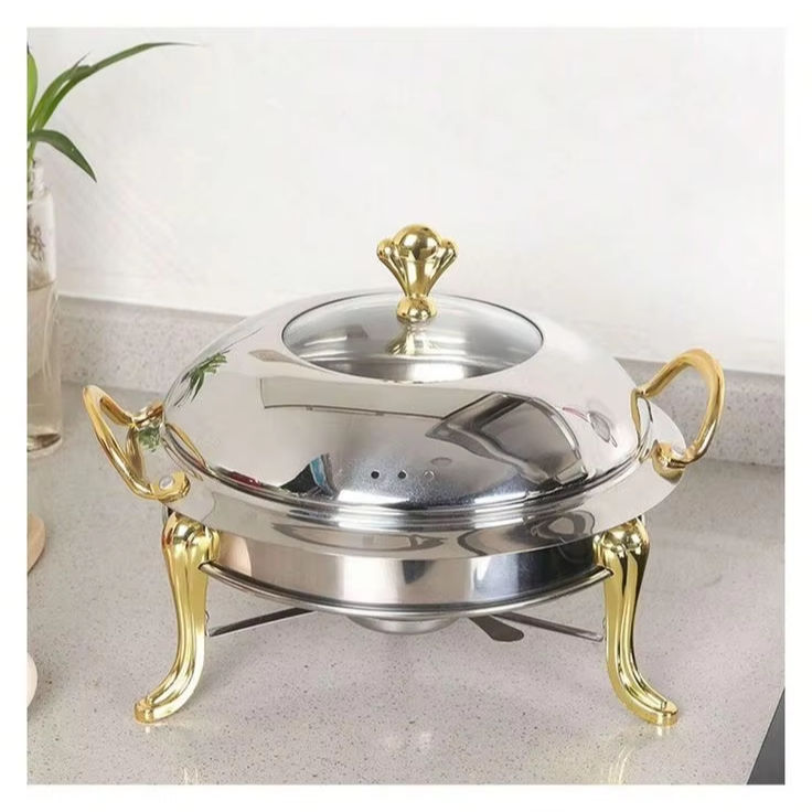 ถาดอุ่นอาหารสแตนเลสคุณภาพพรีเมียม พร้อมหูจับและฝาโดมแบบเก็บความร้อน เหมาะสำหรับงานเลี้ยงอาหารค่ำอย่างเป็นทางการและโอกาสพิเศษ