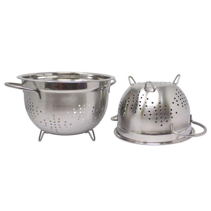 กระชอนสแตนเลสพรีเมียมพร้อมรูระบายน้ำสำหรับกรองเส้นก๋วยเตี๋ยว พาสต้า ผัก และผลไม้ได้อย่างง่ายดาย