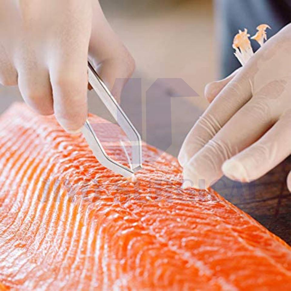 คีมคีบก้างปลาสแตนเลสมีความแม่นยำสำหรับการกำจัดก้างปลาที่ง่ายต่อการยึดเกาะกันลื่น