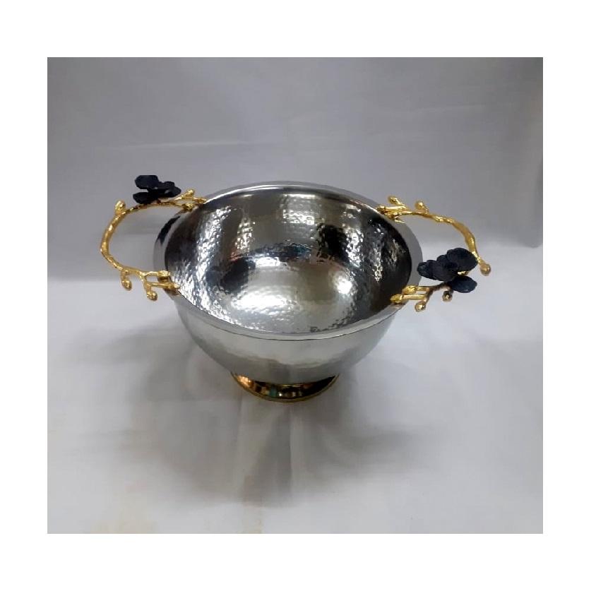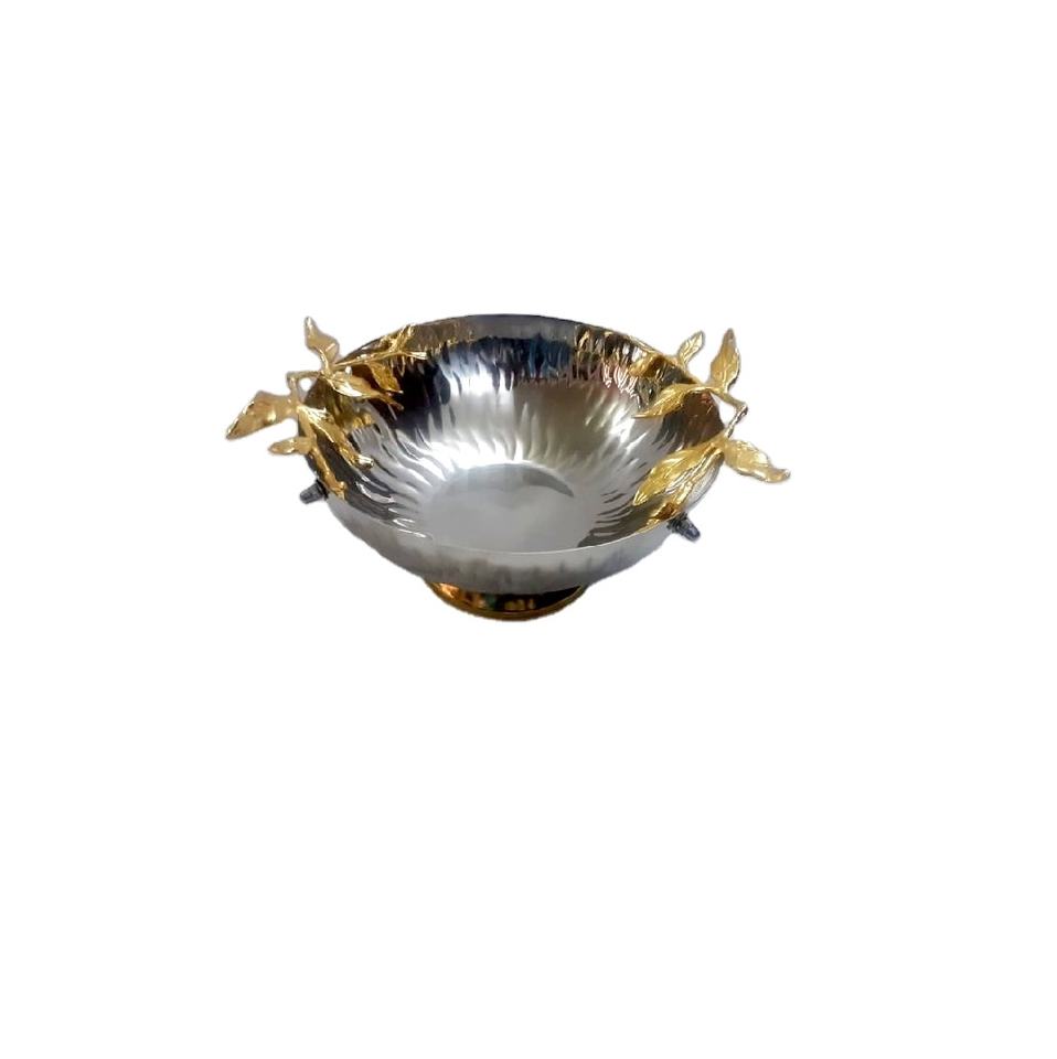 ชามผลไม้สแตนเลสเกรดอาหารแบบพรีเมี่ยมวางกลางโต๊ะขัดเงาและเก็บไว้ในสต็อกสำหรับวันหยุด-ขายส่ง