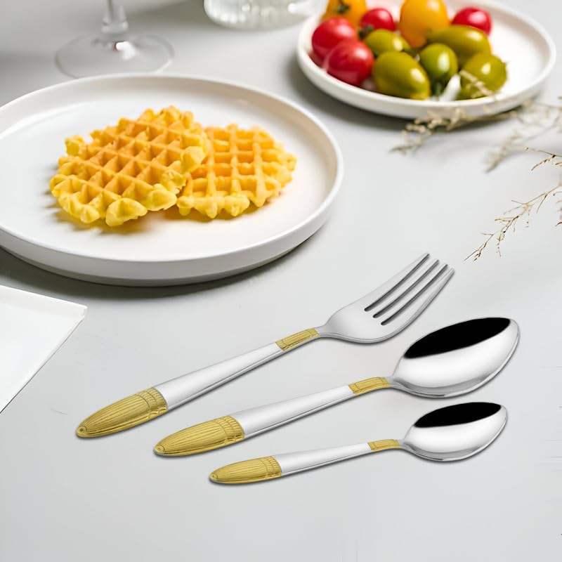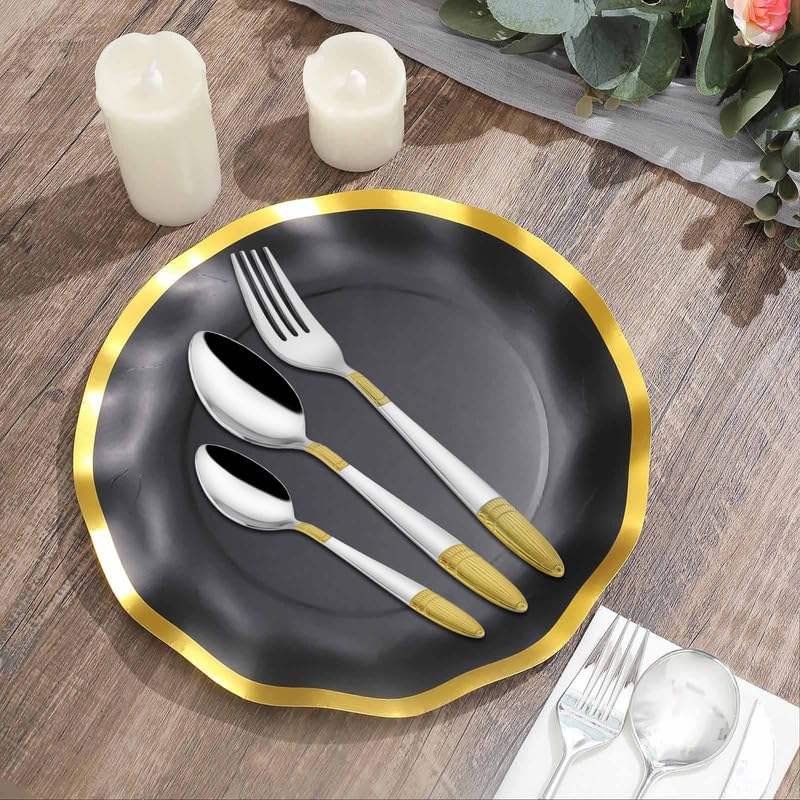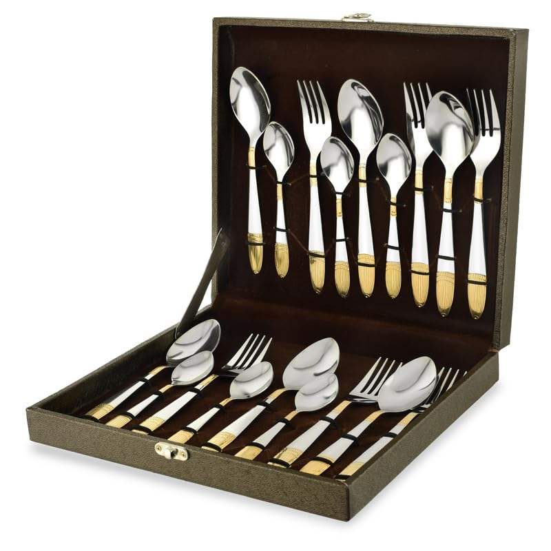 ชุดช้อนส้อมสแตนเลสสีทองพรีเมี่ยมสำหรับบ้านและห้องครัวพร้อมกล่องของขวัญ6ชิ้นช้อนและส้อมตั้งโต๊ะสำหรับเป็นของขวัญ