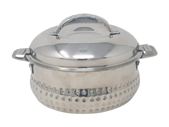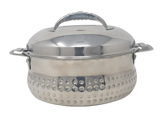 หม้อตุ๋นสเตนเลสสตีลพรีเมียมแบบตอกลาย พร้อมฝาปิดและหูจับด้านข้าง ผิวขัดเงาแบบกระจก เป็นมิตรกับสิ่งแวดล้อม ขนาดเส้นผ่านศูนย์กลาง 20 ซม.